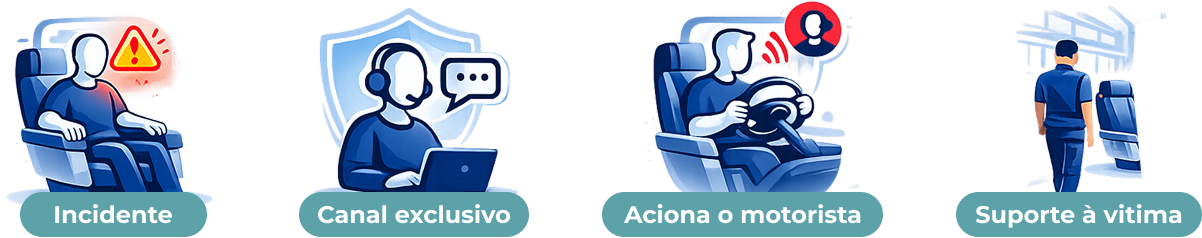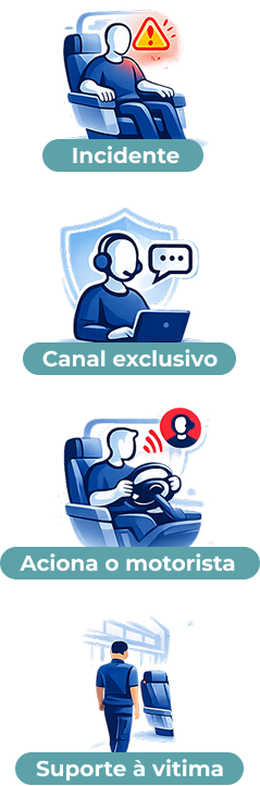 Se o atendimento pelo WhatsApp não for suficiente, o motorista será acionado imediatamente para atuar em qualquer tipo de ocorrência durante a viagem, garantindo sua segurança e tranquilidade.